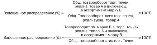 Взвешенное распределение показывает какую долю в общем товарообороте занимают продажи торговых точек, включающих в свой ассортимент марку фирмы и характеризует относительное покрытие рынка.