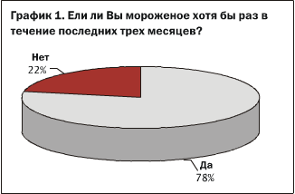 Таким образом, к активным потребителям относятся те, которые употребляют мороженое один и более раз в день, обычные потребители - это те, которые употребляют мороженое от 2-3 раз в неделю до 2-3 раз в месяц. Ну а пассивные потребители едят мороженое 1 и менее раз в месяц. По процентному распределению видно, что доля активных потребителей невелика - 10,8%, и наибольшие проценты приходятся на тех, кто относится к обычным, "средним" потребителям - 68%, пассив составляет 21,1%. Если же смотреть по объемам потребления, то видно, что больше всех потребляют именно активные, хотя "средние" также составляют значительную долю потребителей мороженого.