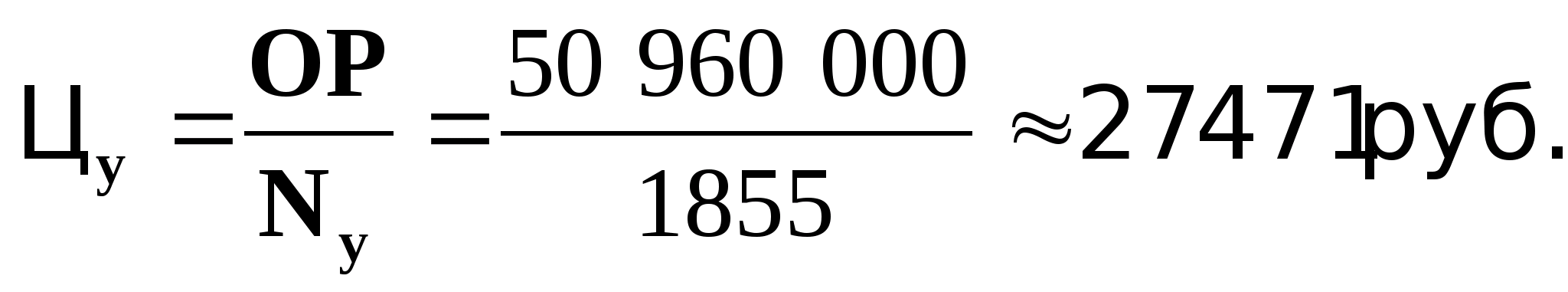 Соответственно цена одной условной продукции Ц>у> определяется из выражения: