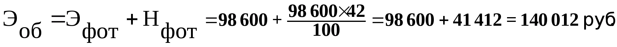 Кроме того, будем иметь экономию от не начисления налогов и сборов с фонда оплаты труда Н>фот>, который сэкономлен, т. е. общая экономия будет равна (42 % отчислений налогов в среднем из ФОТ):