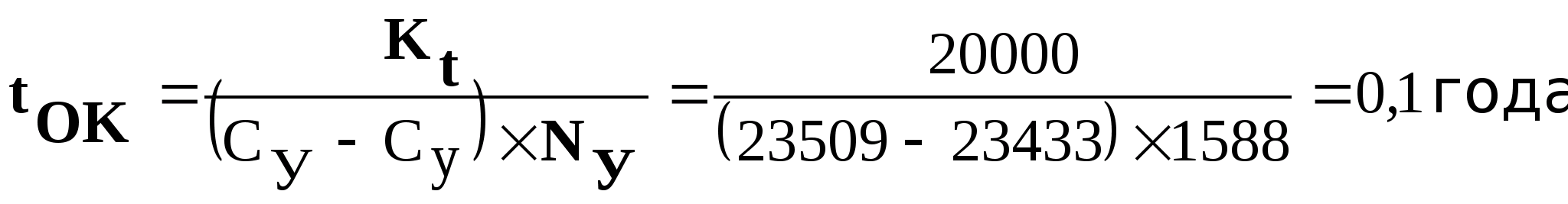 Далее определяем срок окупаемости t>ок> дополнительных капитальных вложений затраченных на осуществление мероприятий.