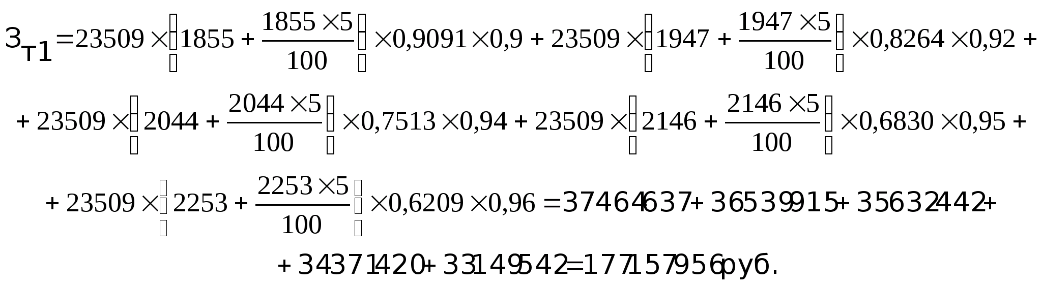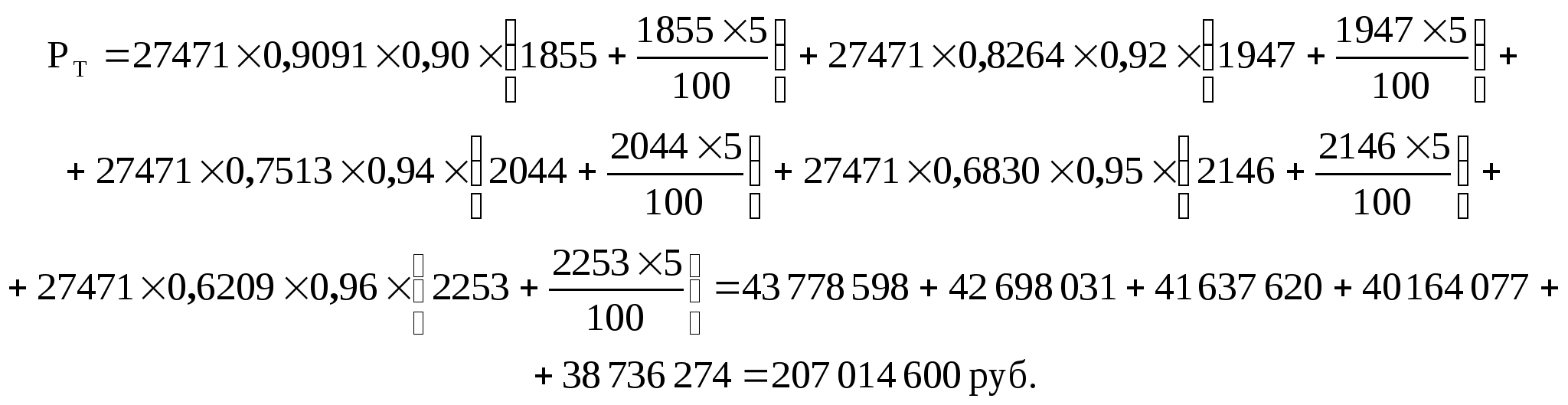 Если принять, по результатам анализа за прошлые года, что программа будет расти примерно на 5 % в год, а принятый расчетный период равен 5 годам, можно определить экономический эффект от внедрения мероприятий по совершенствованию: