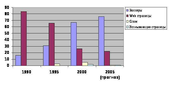 Баннерная реклама, безусловно, стала одним наиболее изученных предсказуемых и надежных методов привлечения новых посетителей на сайт. Сейчас примерно 70% рекламы в Интернет приходится на баннерную рекламу (см. приложение 1 таблицу 3). Здесь я дам некоторые советы по использованию баннеров для продвижения своей марки или Web сайта.