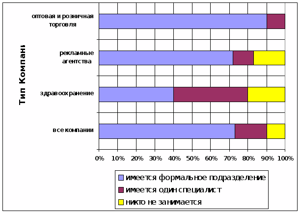 | имеется формальное подразделение | имеется один специалист | никто не занимается | |||