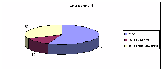 Процентное соотношение объема трех перечисленных видов рекламы за 2002 год приведено в диаграмме 4.