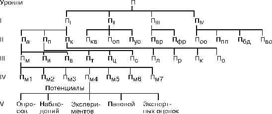 Основной фрагмент пятиуровневой структуры потенциала маркетинга представлен на рис. 2. Численная оценка потенциалов на каждом уровне позволяет провести оценку потенциала маркетинга всего предприятия или группы предприятий.