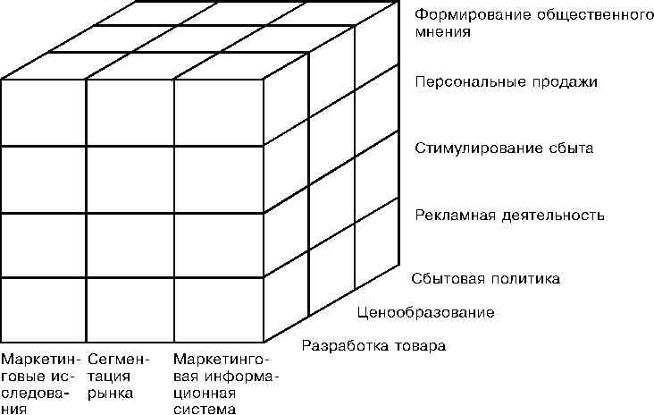 Более детальный, третий, дивизиональный уровень описывает содержание потенциалов второго уровня в зависимости от разделов аппарата маркетинга. Так, классическими разделами (дивизионами) комплекса маркетингового инструментария являются [1]: маркетинговые исследования, маркетинговые информационные системы, сегментация рынка, разработка товаров, ценообразование, сбыт и продвижение (реклама, персональные продажи, формирование общественного мнения, стимулирование сбыта) товаров.