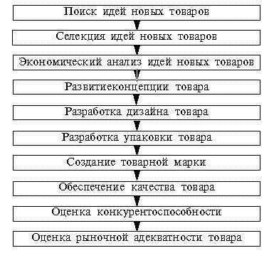 Опубликованные в настоящее время схемы разработки новых товаров, как правило, включают следующие этапы [1,2]: генерацию идей, отбор идей, разработку концепции товара, разработку стратегии маркетинга, анализ возможностей производства, собственно разработку продукта, испытания в рыночных условиях и коммерческую реализацию. Данная последовательность этапов носит достаточно общий интегрированный характер, и не содержит детального обсуждения целого ряда значимых блоков маркетинговой деятельности предприятия, таких как элементы маркетинговой разработки товара, включающие форму, цвет и материал продукта, оценку рыночной адекватности товара и его конкурентоспособности, а также прогнозирование сбыта товаров и разработку товарной политики предприятия.