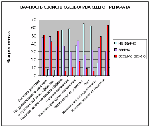 5. Определите важность для Вас следующих свойств при покупке обезболивающего препарата: