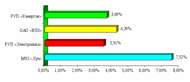 По секции 7270 «Часы» ОАО «ЦУМ Минск» в июне 2008 г. коэффициенты устойчивости ассортимента часов в целом по универмагу составил 0,57, в том числе: по МЧЗ «Луч» - 0,5; по РУП «Электроника» - 0,62; по ОАО «ВПЗ» - 0,55; по РУП «Камертон» - 0,6; то есть по результатам проверок наиболее соблюден ассортиментный перечень в секции 7270 «Часы» по РУП «Электроника». В универмаге в июне 2008 г. в секции «Часы» коэффициенты полноты ассортимента в целом по универмагу составил 0,58, в том числе: по МЧЗ «Луч» - 0,55; по РУП «Электроника» - 0,62; по ОАО «ВПЗ» - 0,55; по РУП «Камертон» - 0,6; то есть по результатам проверок наиболее соблюден ассортиментный перечень в секции «Часы» по РУП «Камертон».