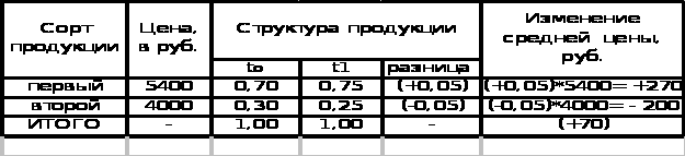 Таблица 2. Влияние сортового состава на изменение среднего уровня цены изделия А.