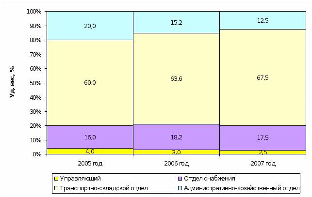 Структура персонала предприятия за анализируемый период претерпела некоторые изменения, так в 2007 году по сравнению с базисным 2005 годом доля численности административно-хозяйственного персонала снизилась на 7,5% и составила 12,5% в общей численности работников.