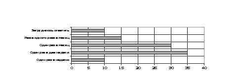 Частота совершения покупки чая во многом зависит от количества покупаемых упаковок и их объема. Большинство респондентов – 35% – покупают чай один раз в 2 недели (рис.4). Один раз в месяц его приобретают 30%, один раз в неделю – 10%, и 15% опрошенных покупают напиток реже одного раза в месяц.