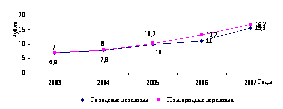 В результате финансово-хозяйственной деятельности ФГУП «Автоколонна 1493» г. Кропоткина за 2007 год получены убытки в сумме 6,4 млн.руб., за 2005 год убытки составили 2,3 млн.руб., при этом убытки в 2007 году от городских перевозок составили 3,1 млн.руб. от пригородных – 3,2 млн.руб., за 2005 год соответственно 1,3 и 1 млн.руб. Прибыль от других видов перевозок и от передачи в аренду маршрутных такси и части пригородных автобусов в 2007 г составила 5 млн.руб. При резком росте цен на ГСМ в 2005-2007 гг. убытки предприятия могли быть значительно выше особенно на пригородных перевозках где расходы на горючее в составе затрат составляют более 40%.