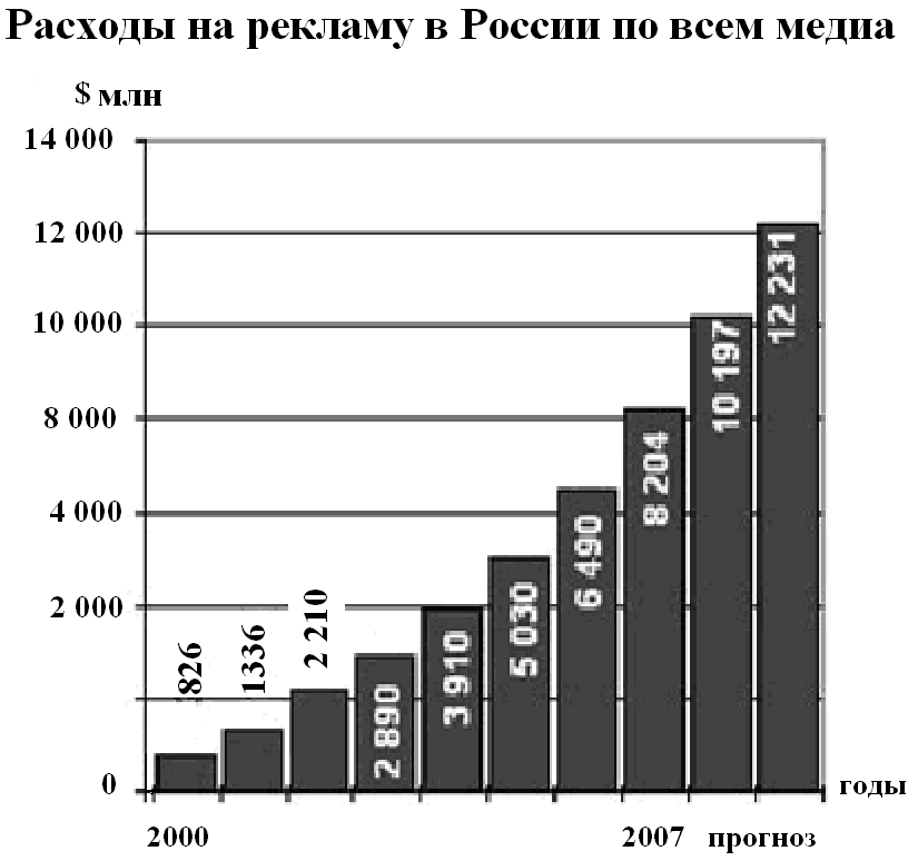 Российский рынок рекламы расценивается в мире как один из наиболее перспективных. Реклама дорожает, но пока еще стоит дешевле, чем за рубежом. Поэтому транснациональные корпорации закупают рекламу в России на несколько лет вперед. Еще одна причина увеличения рекламного рынка – приход в страну все большего числа иностранных компаний, плюс активизация российских участников рынка, появление новых брендов [14], [29], [32].