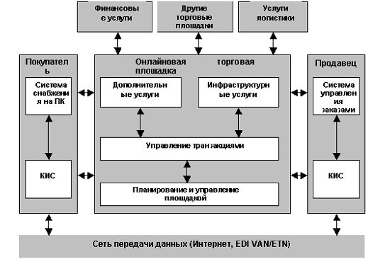 Альтернатива для решти учасників ринку - електронні торгові майданчики. Компанія може не проводити великого асортименту товарів, але володіти достатньо високою купівельною спроможністю і стати учасником вертикального електронного ринку. А якщо у неї великий розкид напрямів діяльності, таких, як, наприклад, транспортні послуги, фінансові послуги або щось ще, їй необхідно націлюватися на участь в горизонтальному електронному ринку.