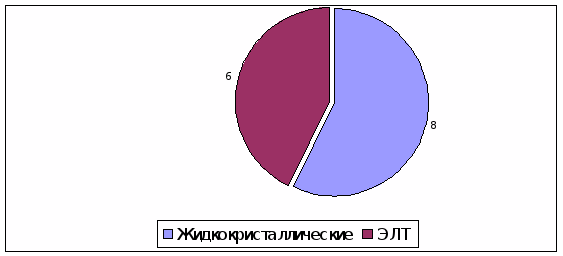 Среди представленных в магазине мониторов первое место занимают жидкокристаллические мониторы. Они более легки, компактны, их толщина составляет всего несколько сантиметров, безопасны для человека и окружающей среды, т.к. не имеют вредных излучений. Из фирм-производителей предпочтение отдается продукции компаний Green Wood (38% от всего ассортимента) LG (31%). Мониторы этих компаний отличаются высоким качеством и надежностью в эксплуатации. Все мониторы соответствуют стандартам ТСО 99, MPR II.