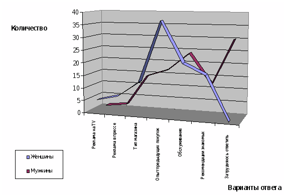 "Другое" - большинство из ответивших на данный вопрос были склонны утверждать, что наименование магазина соответствовало общему впечатлению от его оформления, что не могло и быть иначе, так как оформление магазинов строго регламентировано согласно разработанного дизайнерами плана.
