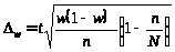 де w — вибіркова частка, яка визначається з відношення одиниць, які мають досліджувану ознаку, до загальної чисельності одиниць вибіркової сукупності;