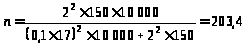 Умовно приймаємо, що в кожній квартирі проживає одна сім’я і на неї виділяється одна анкета. Припустимо, що попередніми дослідженнями встановлено, що середній розмір покупки та дисперсія становлять відповідно 17 і 150 грн. Виходячи з того, що гранична помилка не повинна перевищувати 10 % від середньої і що результати обстеження необхідно гарантувати з довірчою імовірністю, не меншою 0,954, чисельність вибірки має становити