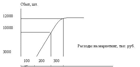 Вторая схема планирования на основе оптимизации прибыли. Оптимизация прибыли требует от руководства фирмы четкого осознания взаимосвязи между объемом продаж и различными составляющими комплекса маркетинга. Для обеспечения взаимосвязи между объемом продаж и одним или несколькими этапами комплекса маркетинга можно использовать термин "Функция реакции сбыта". Функция реакции сбыта – прогноз вероятного объема продаж в течение определенного отрезка времени при разных условиях затрат на один или несколько элементов комплекса маркетинга (рис. 14.3.)