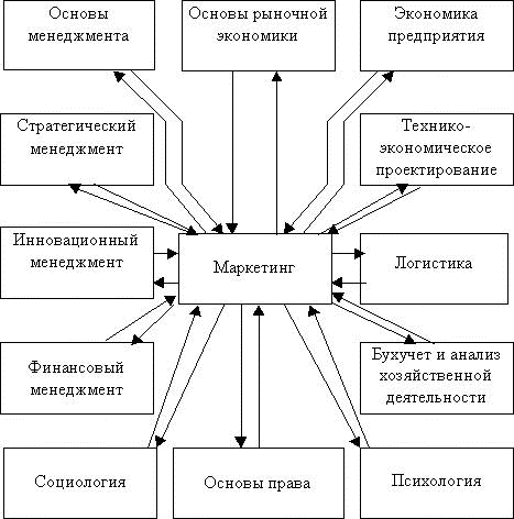 Рис.1.1. Основные взаимосвязи курса “Маркетинг” с другими дисциплинами.
