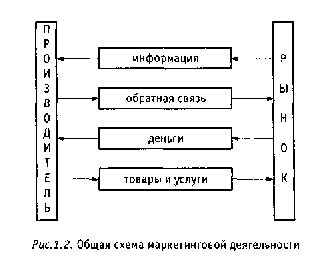 Практический маркетинг, собственно, и нужен для решения этих задач. В наиболее общем виде схему маркетинговой деятельности можно представить как связь производителя и потребителя через рынок: