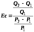 Еластичність попиту Ер у залежності від ціни товару можна визначити як співвідношення між відносною зміною попиту Q і відносною зміною ціни товару Р:
