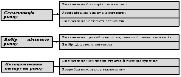 Процес SТР-маркетингу охоплює три основні стадії, які випливають з його назви (рис. 1)