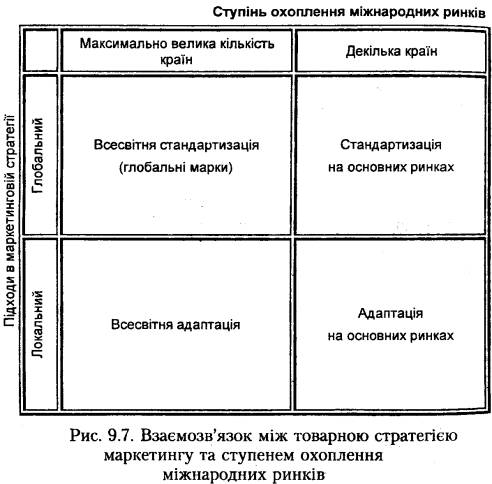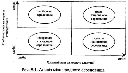 У міжнародному маркетингу для оцінки впливу зазначених сил на обрання маркетингової стратегії, використовують матричний підхід (рис. 9.1).