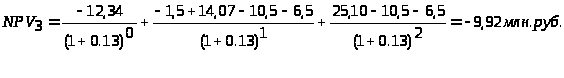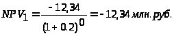 Чистый приведенный доход в 2011 году, также как и в первом случае остается на уровне инвестиций проекта, т.е. в размере -12,34 млн. руб.