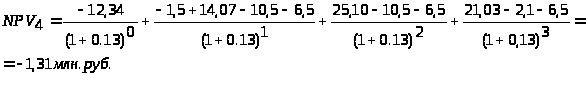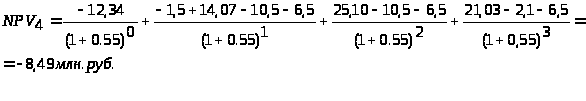 Чистый приведенный доход в 2011 году, также как и в первом и втором случаях остается на уровне инвестиций проекта, т.е. в размере -12,34 млн. руб.