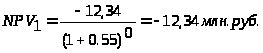 Чистая приведенная стоимость инвестиционного проекта в 2012 году при ставке дисконтирования 55% составила бы – 15,2 млн. руб.