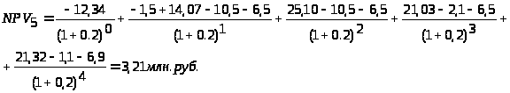 Чистая приведенная стоимость инвестиционного проекта в 2012 году при ставке дисконтирования 20% составила бы – 16,03 млн. руб.
