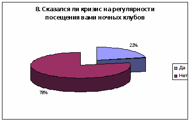 8вопрос – «Сказался ли кризис на регулярности посещения Вами ночных клубов».