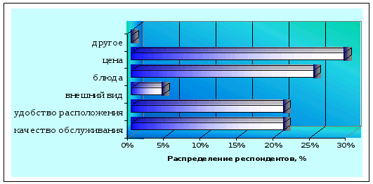 На основании полученных данных можно сделать вывод, что для современного потребителя при выборе кафе приоритетной является цена.
