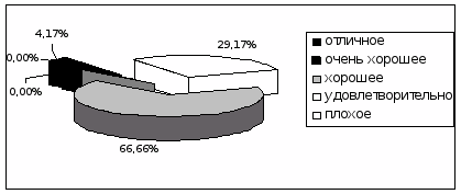 Анализ данных по оценке респондентами качества обслуживания в кафе «STEAK» показал, что только 4,17% (1) из них считают качество товара отличным, 29,17% (7) респондентов – очень хорошим и 66,66% (16) - хорошим. Диаграмма оценки респондентами качества обслуживания в кафе «STEAK» представлена на Рисунке 9.