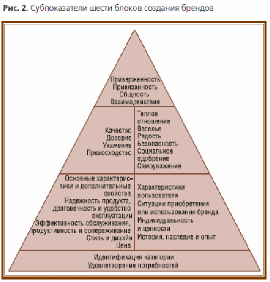 Благодаря модели капитала бренда на основе потребительских предпочтений самые сильные бренды выделяются во всех шести блоках строительства бренда. Наиболее ценный блок — резонанс бренда — возникает, когда все остальны блоки разработки бренда полностью согласуются с нуждами, потребностями и желаниями покупателей (рис. 3).