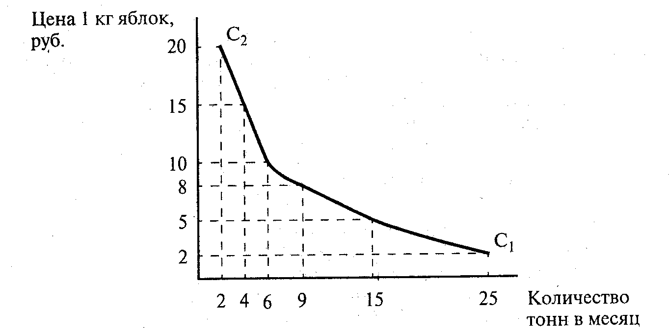 предъявлен спрос. Кривая C>1>-C>2 >на графике показывает: при повышении цены платежеспособная потребность людей сокращается и, наоборот, когда цена снижается, спрос на продукты увеличивается.