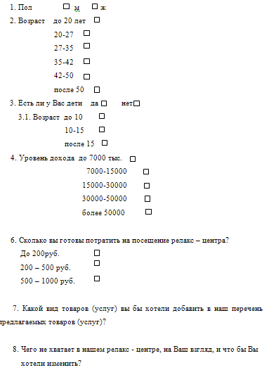 Примерный вариант бланка анкеты: