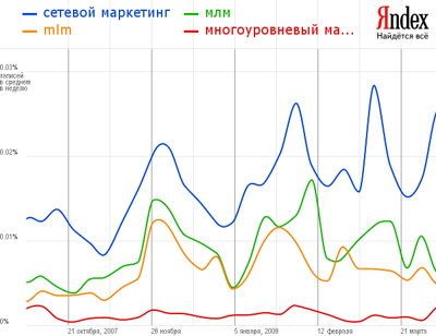 При этом его оригинальное название «многоуровневый» маркетинг практически не применяется. Проследить это можно даже на основе данных поисковых запросов в поисковой системе Интернет «Яндекс» (рисунок 4).