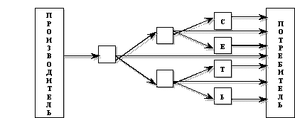 (2) Мелкооптовая продажа, потребительские системы – продукция реализуется, минуя розничную сеть непосредственно производителем, крупным или средним оптовиком потребителю (склады, оптовые базы и рынки, кооперированные закупки потребителей и т.п.).