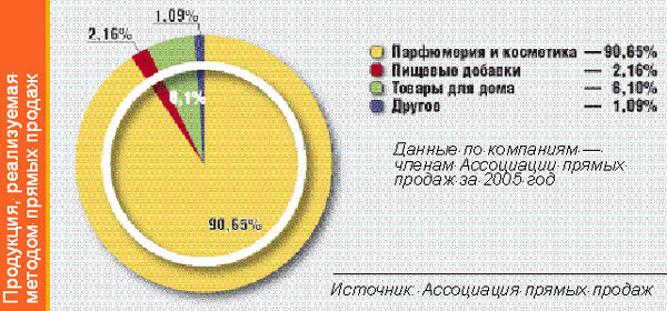 У многоуровневого маркетинга и прямых продаж особенно хорошие перспективы в России. Ежегодно примерно 3 млн. россиян выступают в роли активных дистрибьюторов компаний «сетевого» маркетинга и объемы продаж, этих, компаний: как видно по приведенным выше данным, постоянно растут. Особо актуальными развитие прямых продаж и системы сетевого маркетинга являются для производителей парфюмерно-косметической продукции. По итогам исследования российского рынка за 2005 год в канал дистрибьюции лидируют универмаги, специализированные сети и прямые продажи (рисунок 10).