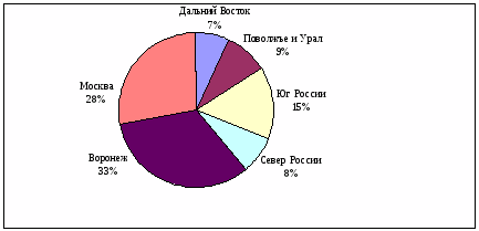 Анализ региональных продаж плитки за 1996-99 годы представлен в Приложении 3. Основная доля продаж приходится на Воронежскую область и в последнее время она увеличивается.