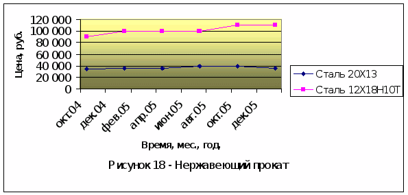 С учетом того, что удельный вес металлопроката в себестоимости трубопроводной арматуры составляет в среднем 35%, в настоящее время её себестоимость может измениться следующим образом: для стальной арматуры может снизиться на 1,2-3,3%, для чугунной арматуры колебания цены материала незначительны. Цена на нержавеющую сталь имеет тенденцию к повышению, но в настоящее время ниже, чем была осенью. Информация дана без учета динамики цен на другие составляющие.
