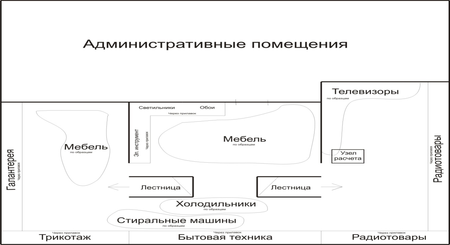 Рисунок 1.1 примерная схема торгово-технологического процесса в магазине самообслуживания
