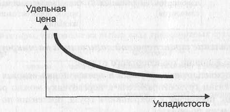Рис. 7. Зависимость удельной цены перевозки от укладистости груза