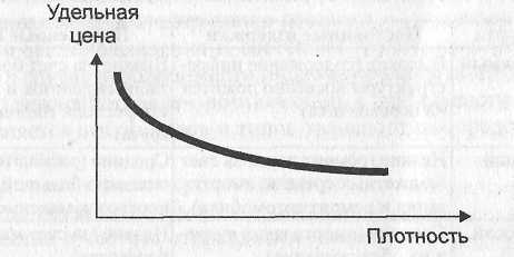 Рис. 6. Зависимость удельной цены перевозки от плотности груза