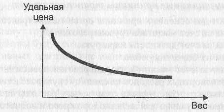 Рис. 5. Зависимость удельной цены перевозки от веса груза
