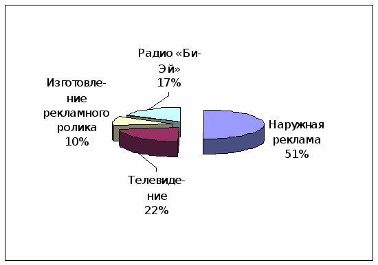 Рис. 1. Структура расходов на рекламу ОАО “Белорусские обои” за 2008 г.